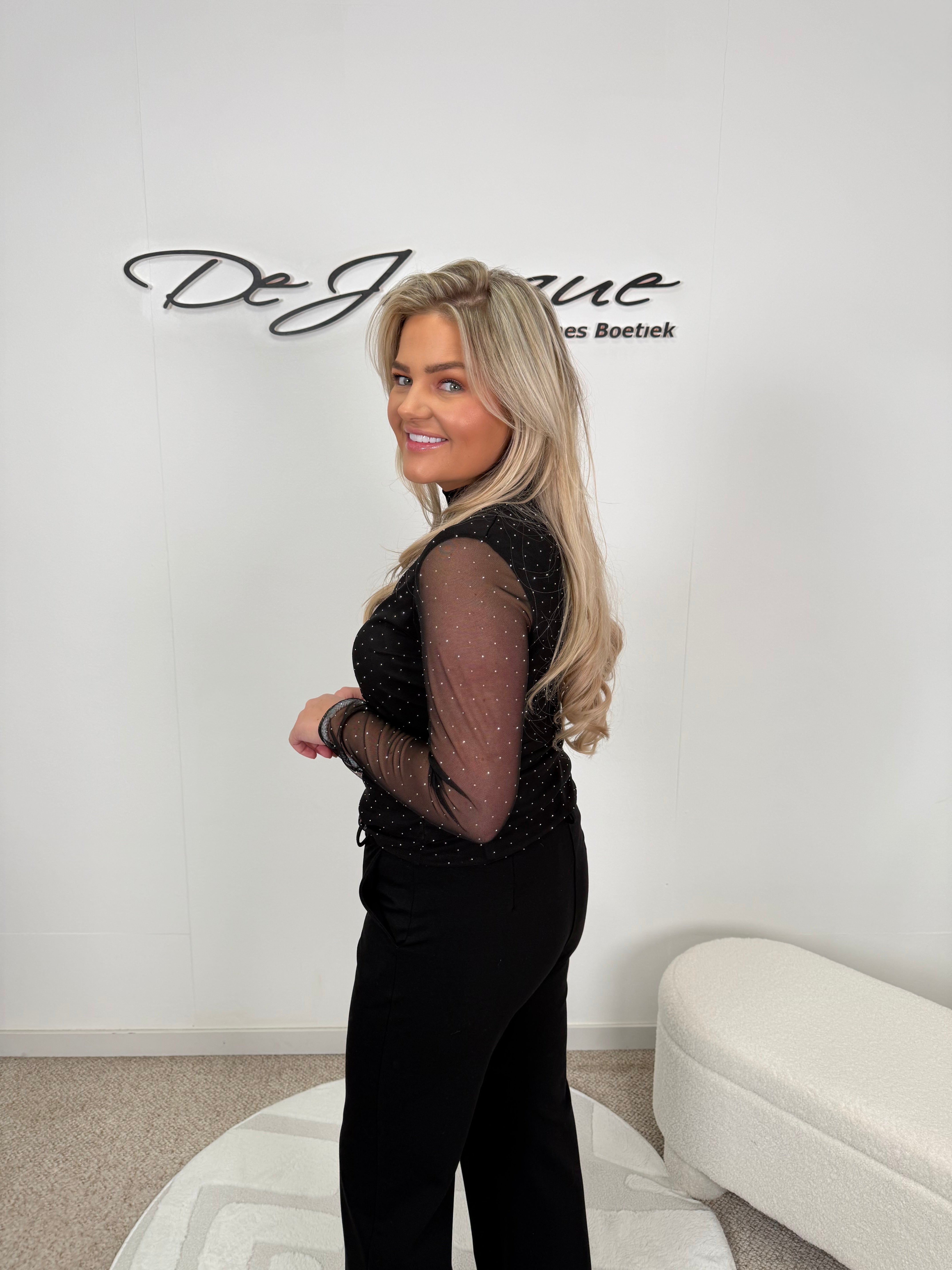 Dejacque glitter mesh top zwart