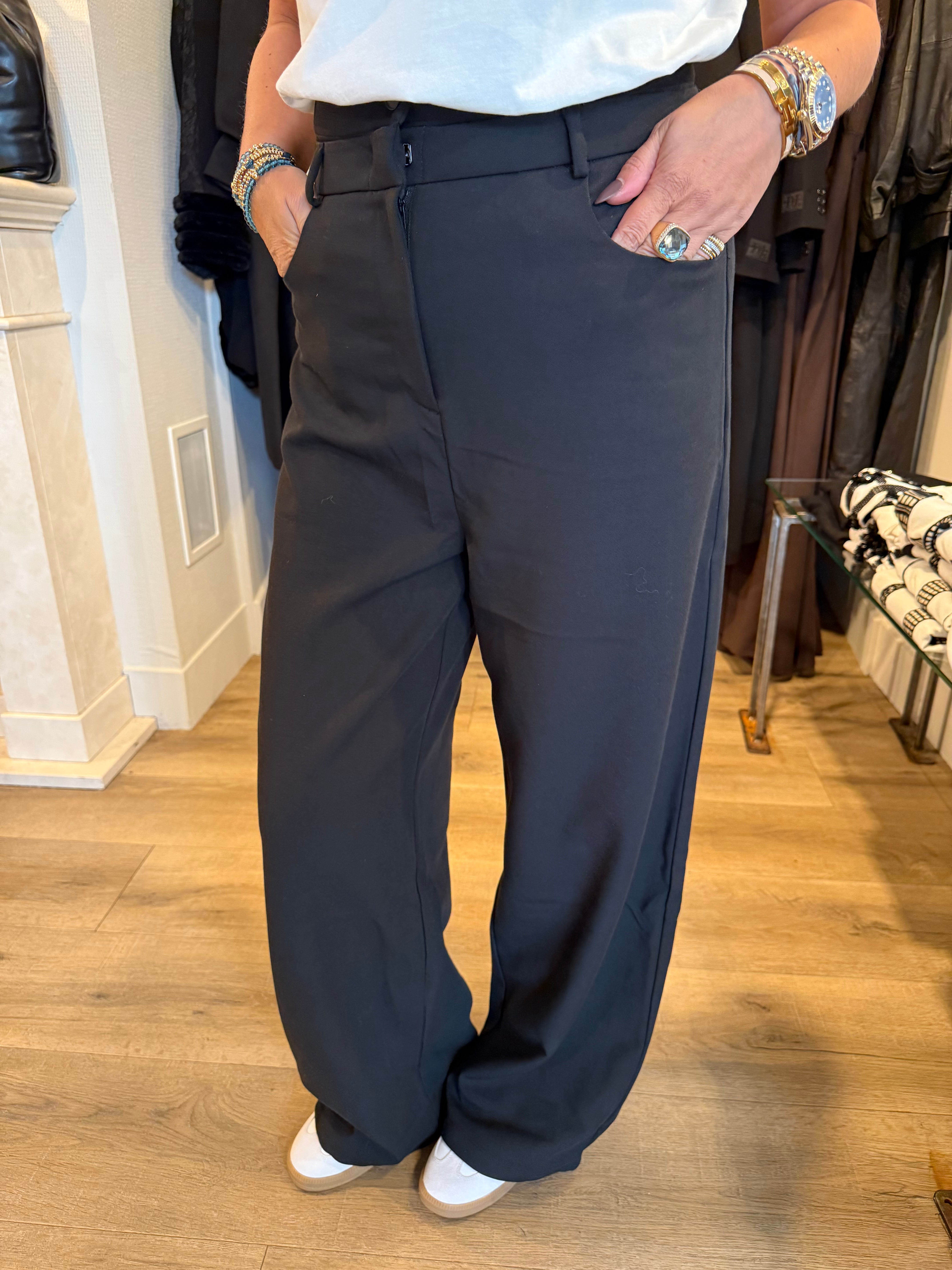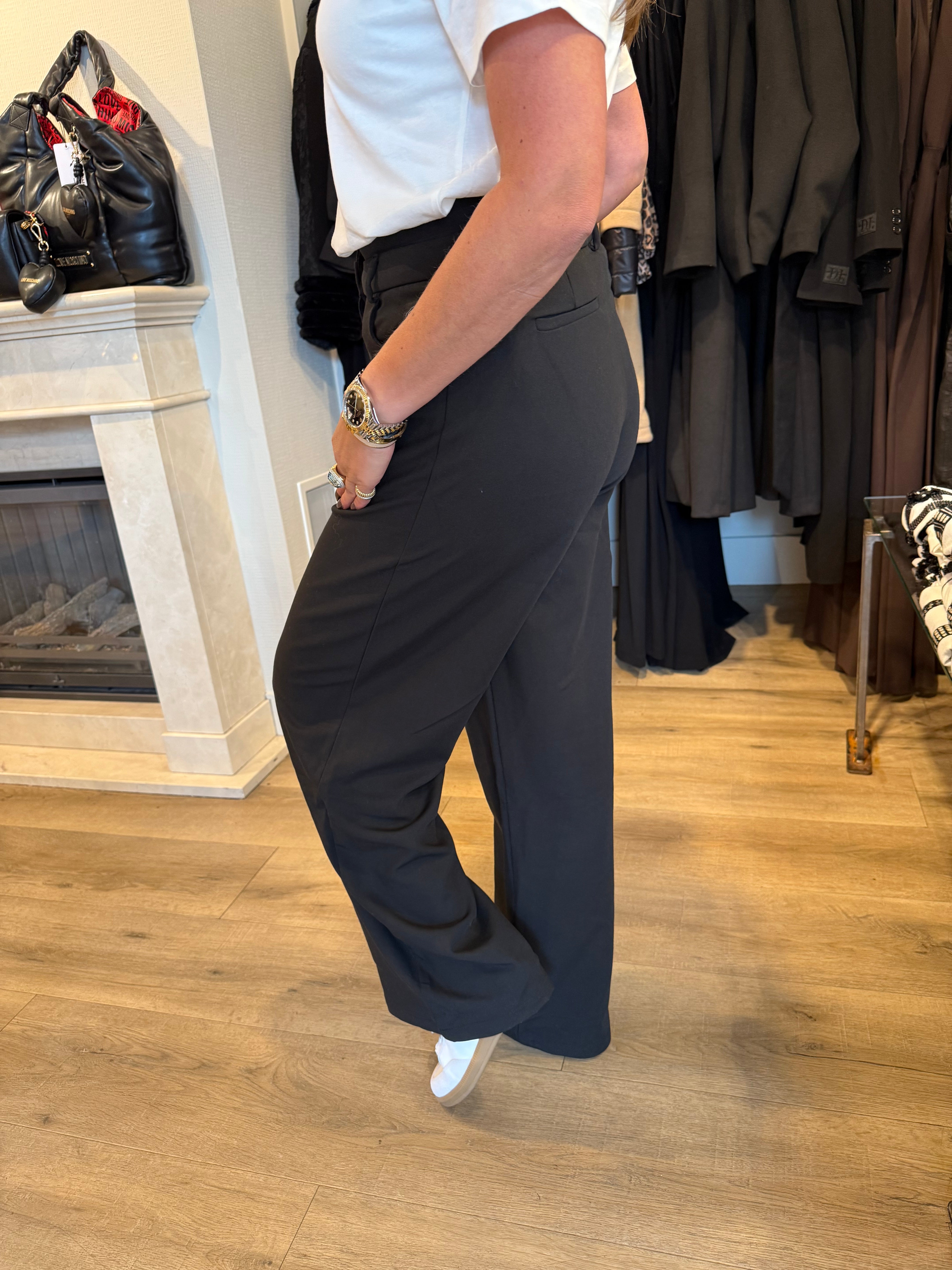 Prachtige pantalon met een sportieve touch. Model draagt maat 28